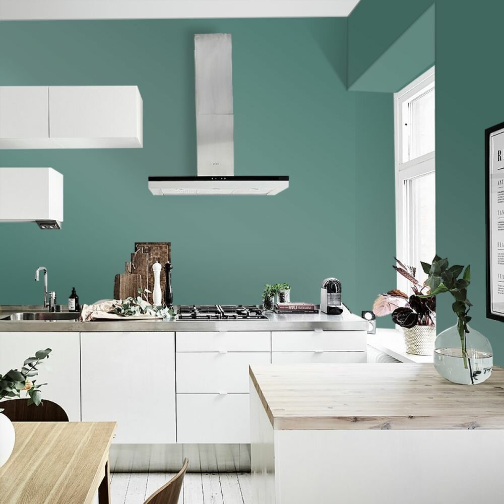 Краска моющаяся интерьерная для стен и потолков, Pollux INTERIOR без запаха, быстросохнущая, акриловая, матовое покрытие, цвет NCS S 4050-B70G, 1л.
