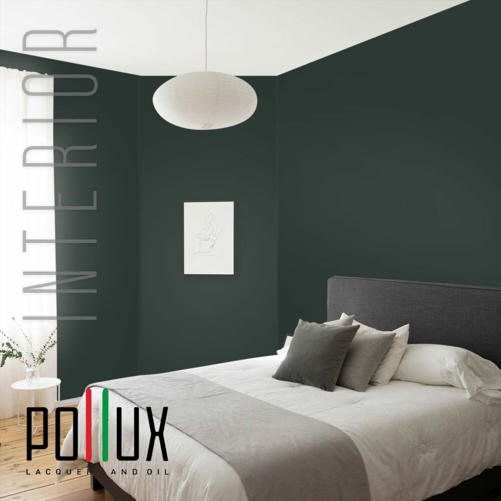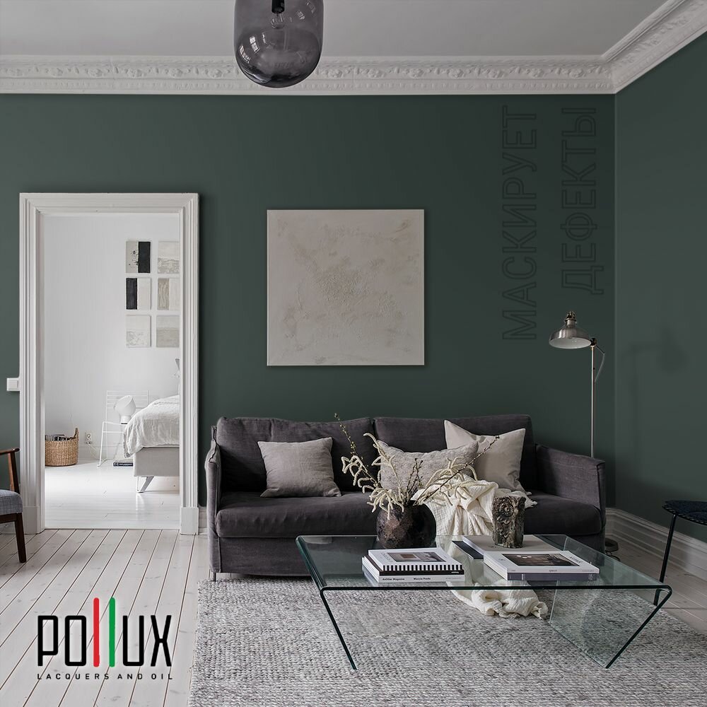 Краска моющаяся интерьерная для стен и потолков, Pollux INTERIOR без запаха, быстросохнущая, акриловая, матовое покрытие, цвет NCS S 4050-B80G, 1л.