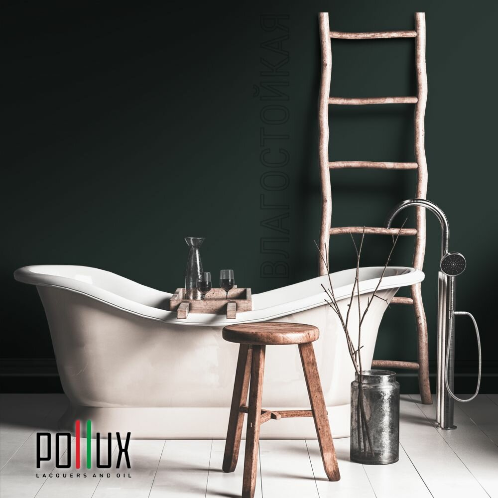 Купить Краска моющаяся интерьерная для стен и потолков, Pollux INTERIOR без запаха, быстросохнущая, акриловая, матовое покрытие, цвет NCS S 8005-B80G, 1л.