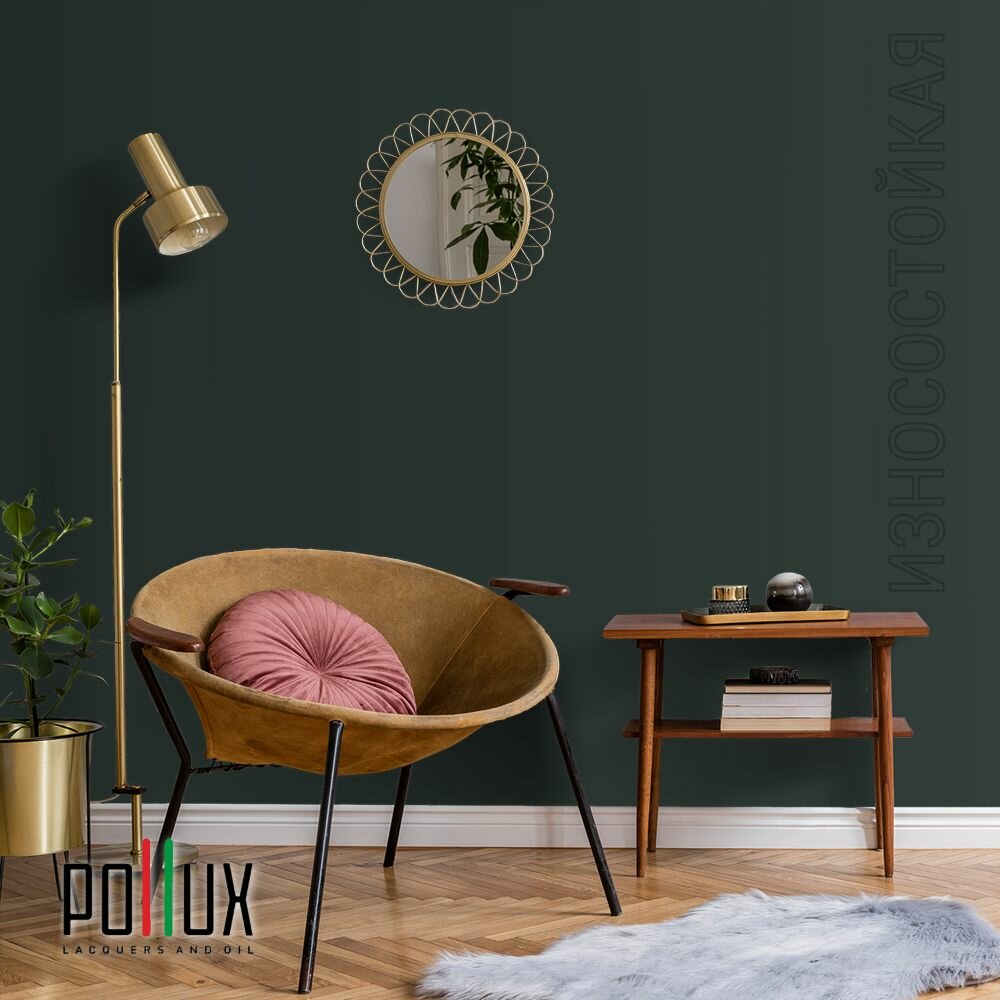 СохранитьКраска моющаяся интерьерная для стен и потолков, Pollux INTERIOR без запаха, быстросохнущая, акриловая, матовое покрытие, цвет NCS S 8005-B80G, 1л. интересное:
