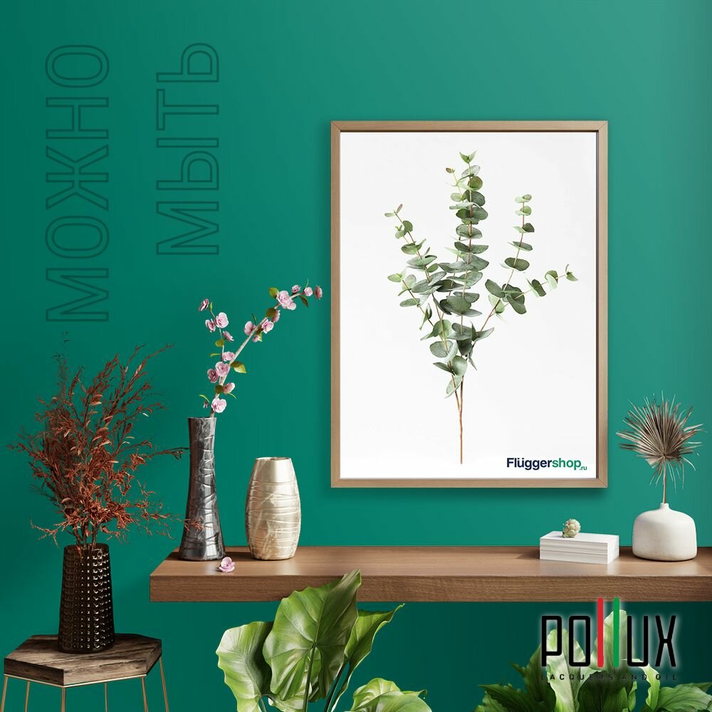 Краска моющаяся интерьерная для стен и потолков, Pollux INTERIOR без запаха, быстросохнущая, акриловая, матовое покрытие, цвет NCS S 5040-B80G, 1л.