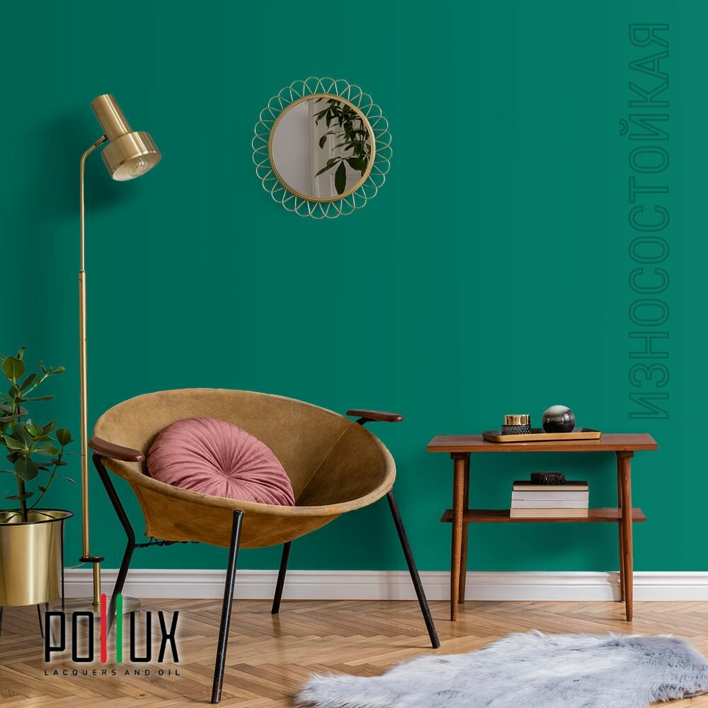 Краска моющаяся интерьерная для стен и потолков, Pollux INTERIOR без запаха, быстросохнущая, акриловая, матовое покрытие, цвет NCS S 4050-B80G, 1л.