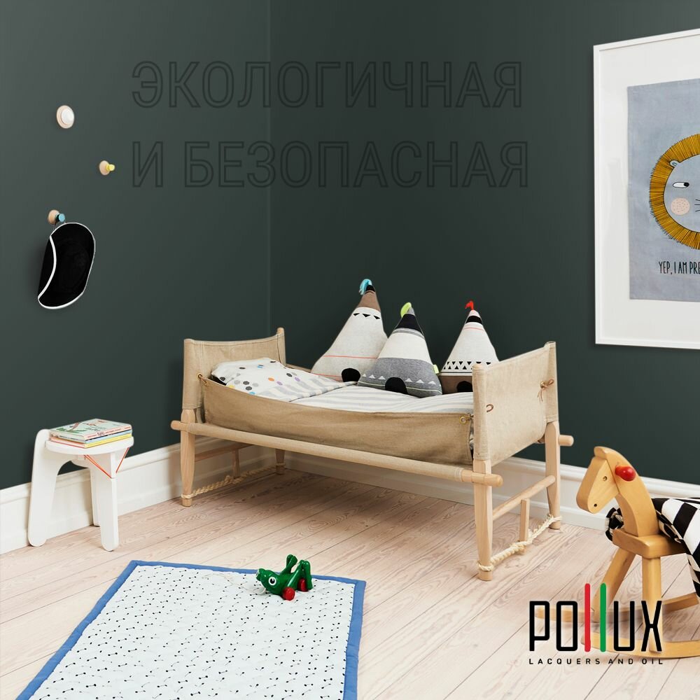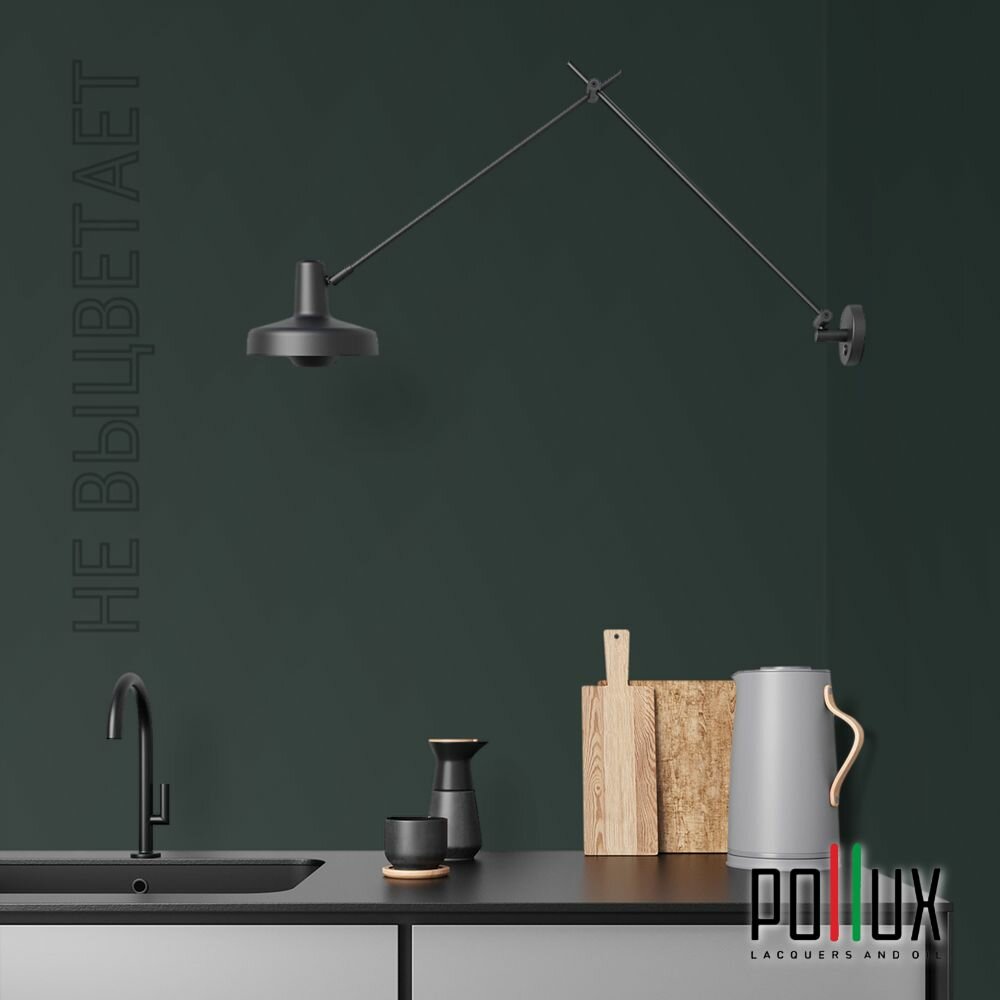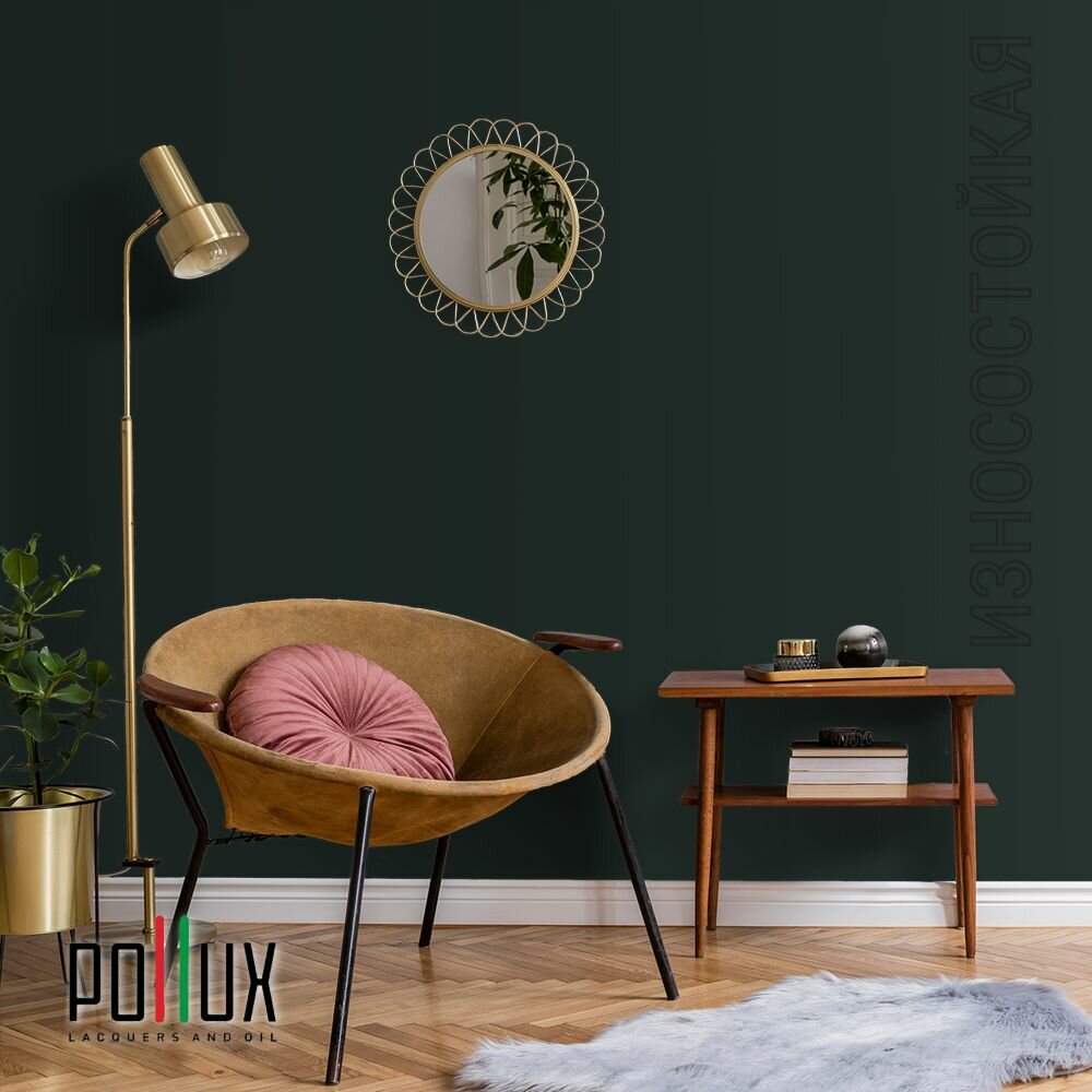 Краска моющаяся интерьерная для стен и потолков, Pollux INTERIOR без запаха, быстросохнущая, акриловая, матовое покрытие, цвет NCS S 8005-B80G, 1л.