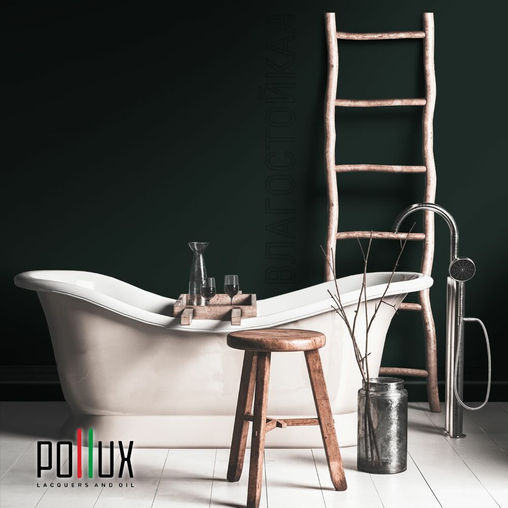 Краска моющаяся интерьерная для стен и потолков, Pollux INTERIOR без запаха, быстросохнущая, акриловая, матовое покрытие, цвет NCS S 4050-B80G, 1л.