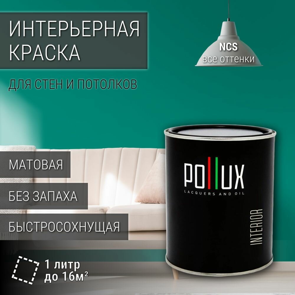Краска моющаяся интерьерная для стен и потолков, Pollux INTERIOR без запаха, быстросохнущая, акриловая, матовое покрытие, цвет NCS S 1510-B80G, 1л.