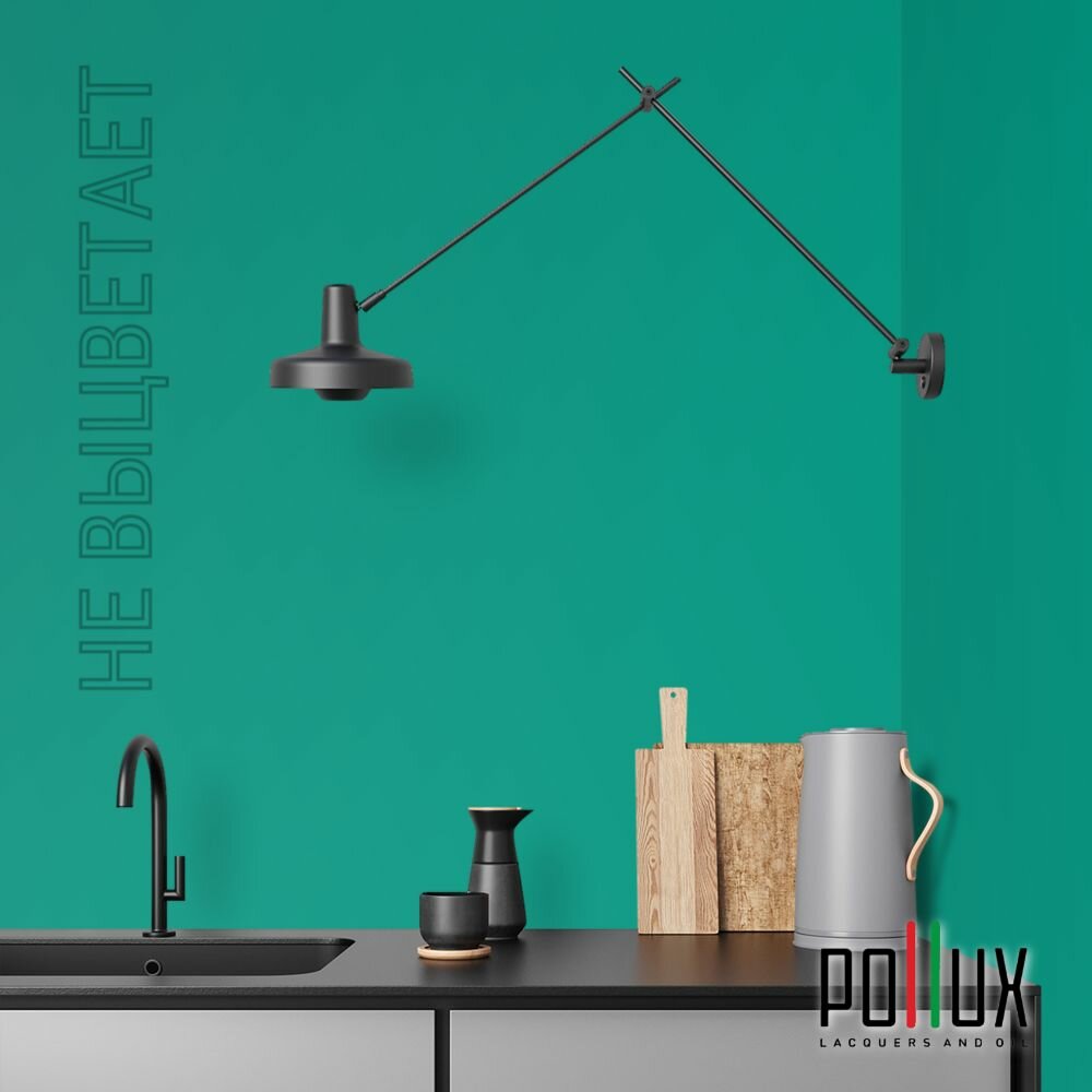 Краска моющаяся интерьерная для стен и потолков, Pollux INTERIOR без запаха, быстросохнущая, акриловая, матовое покрытие, цвет NCS S 3040-B80G, 1л.