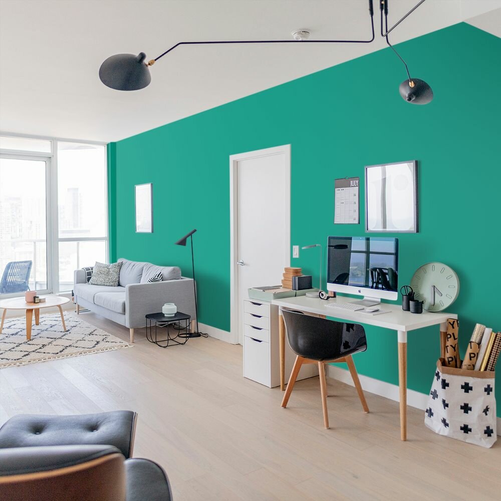 Краска моющаяся интерьерная для стен и потолков, Pollux INTERIOR без запаха, быстросохнущая, акриловая, матовое покрытие, цвет NCS S 5040-B80G, 1л.