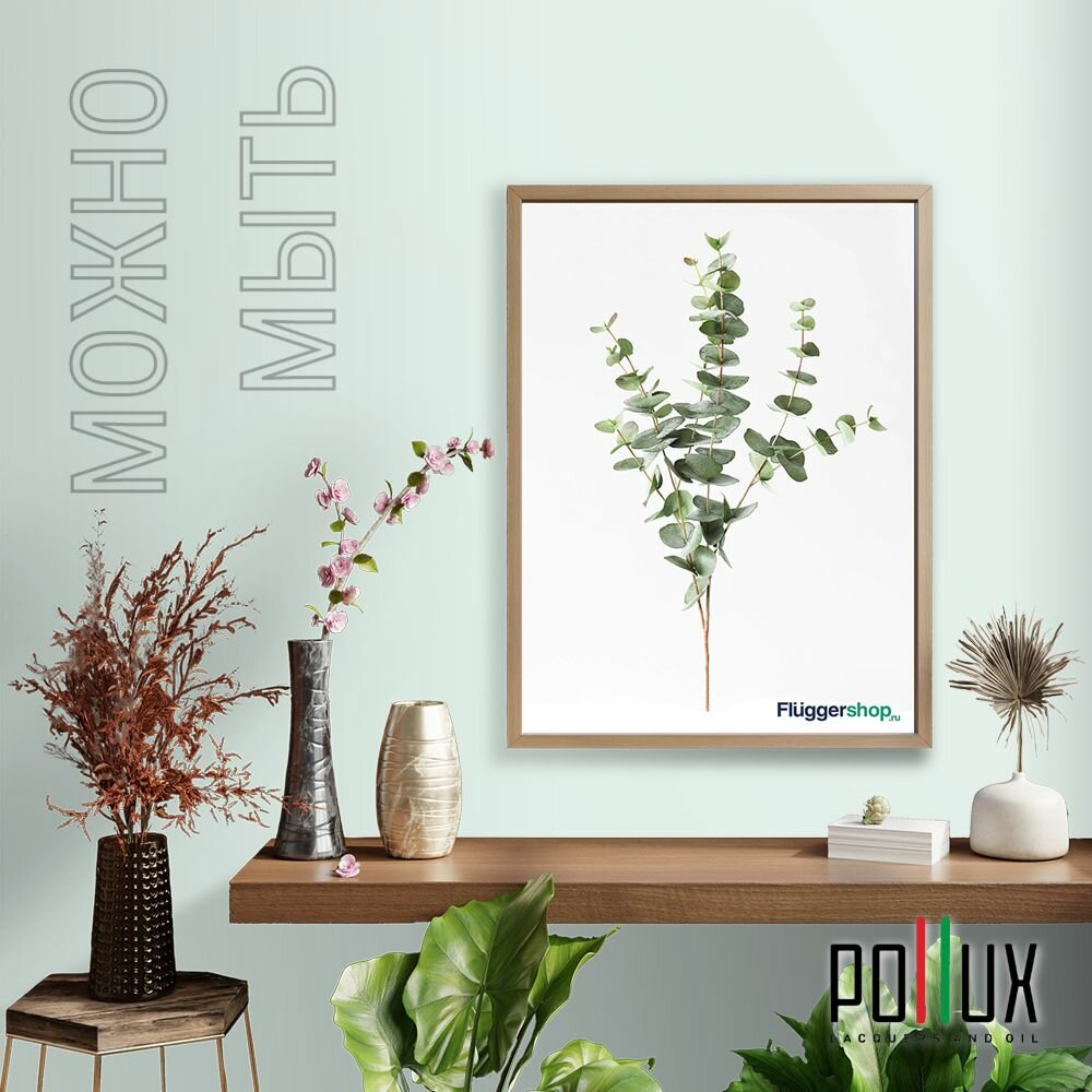 Краска моющаяся интерьерная для стен и потолков, Pollux INTERIOR без запаха, быстросохнущая, акриловая, матовое покрытие, цвет NCS S 0505-B80G, 1л.