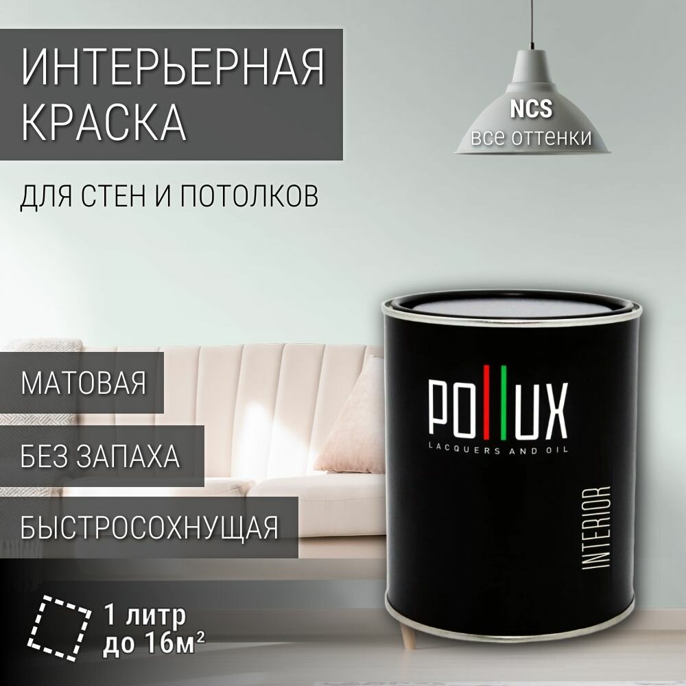 Краска моющаяся интерьерная для стен и потолков, Pollux INTERIOR без запаха, быстросохнущая, акриловая, матовое покрытие, цвет NCS S 1510-B80G, 1л.