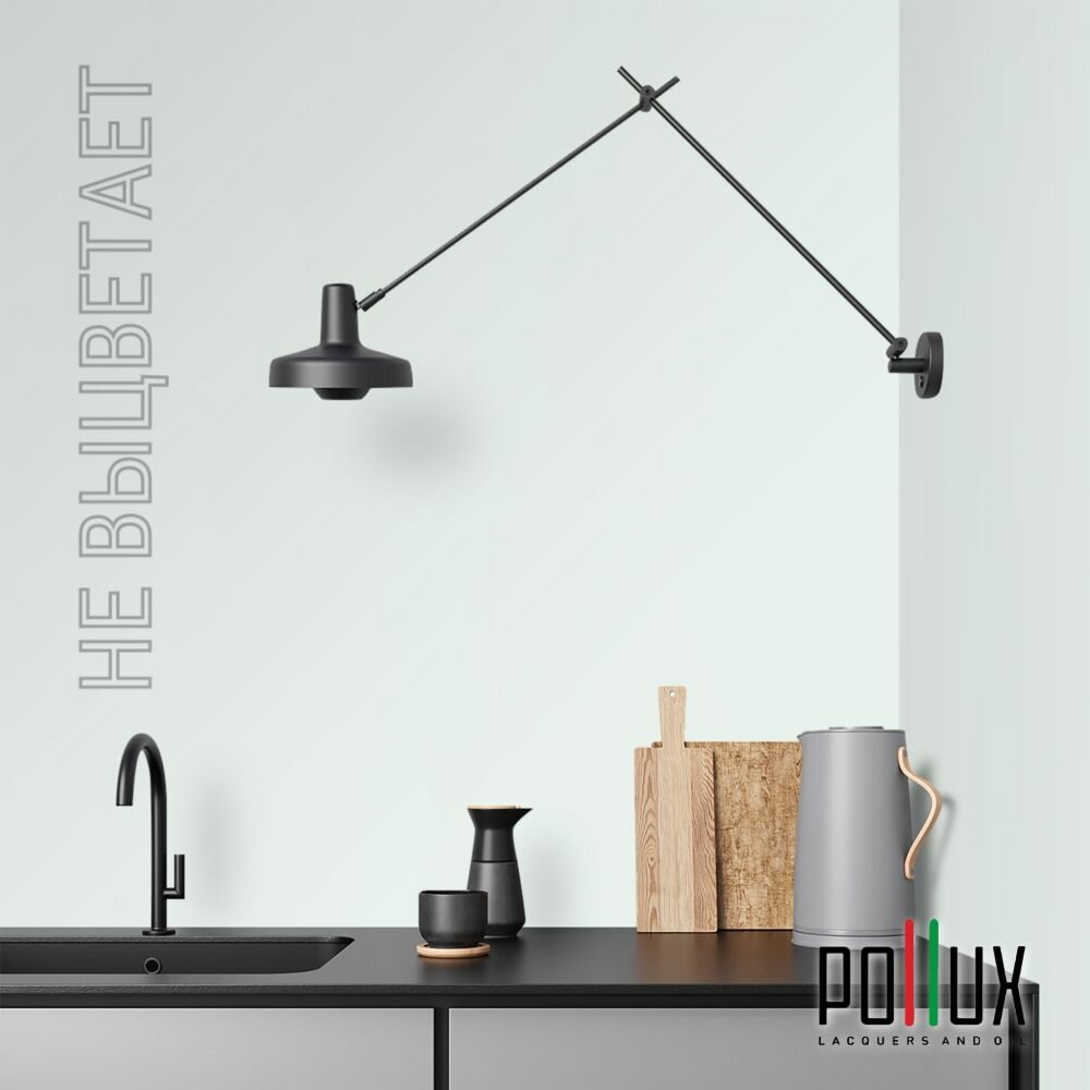 Краска моющаяся интерьерная для стен и потолков, Pollux INTERIOR без запаха, быстросохнущая, акриловая, матовое покрытие, цвет NCS S 0907-B80G, 1л.