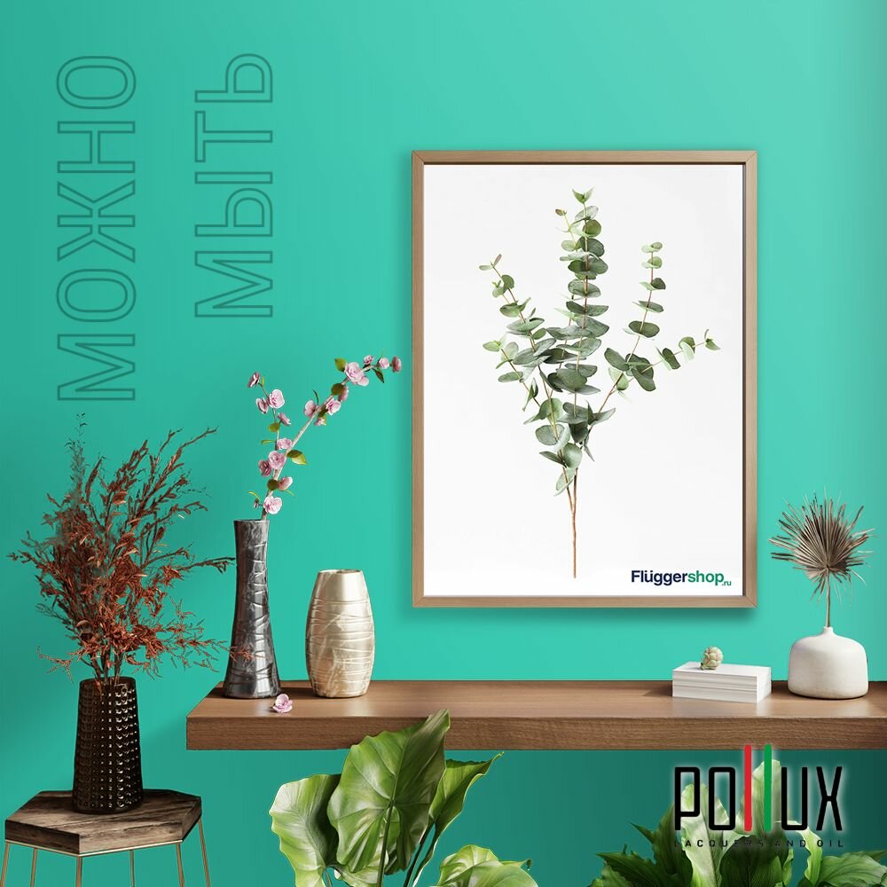 Краска моющаяся интерьерная для стен и потолков, Pollux INTERIOR без запаха, быстросохнущая, акриловая, матовое покрытие, цвет NCS S 5040-B80G, 1л.
