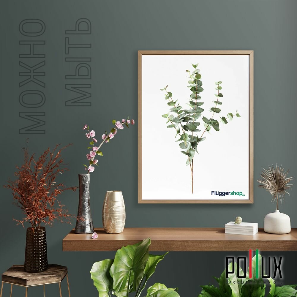 Краска моющаяся интерьерная для стен и потолков, Pollux INTERIOR без запаха, быстросохнущая, акриловая, матовое покрытие, цвет NCS S 6005-B80G, 1л.