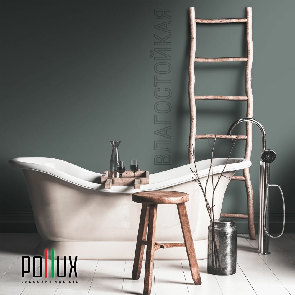 Краска моющаяся интерьерная для стен и потолков, Pollux INTERIOR без запаха, быстросохнущая, акриловая, матовое покрытие, цвет NCS S 1015-B80G, 1л.