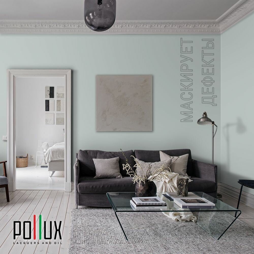 Краска моющаяся интерьерная для стен и потолков, Pollux INTERIOR без запаха, быстросохнущая, акриловая, матовое покрытие, цвет NCS S 1015-B80G, 1л.