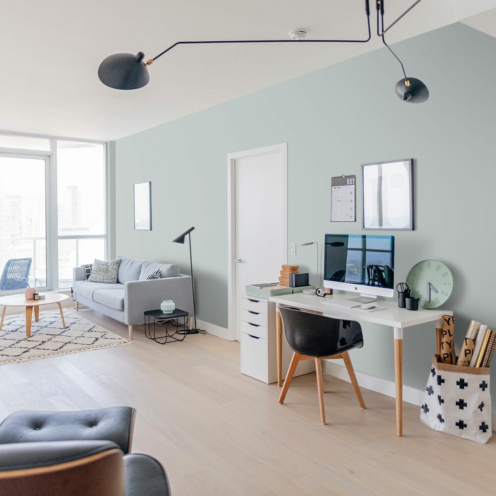 Краска моющаяся интерьерная для стен и потолков, Pollux INTERIOR без запаха, быстросохнущая, акриловая, матовое покрытие, цвет NCS S 1510-B80G, 1л.