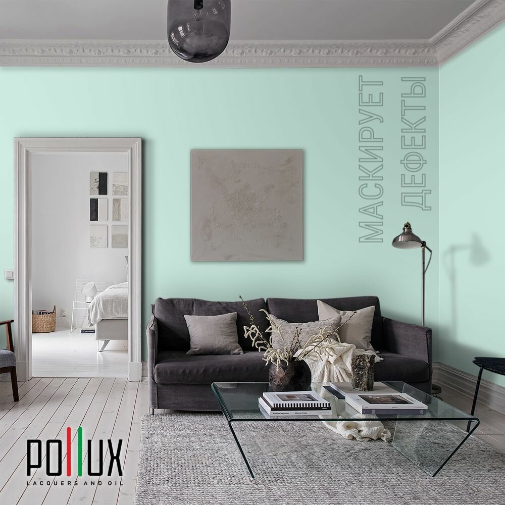 Краска моющаяся интерьерная для стен и потолков, Pollux INTERIOR без запаха, быстросохнущая, акриловая, матовое покрытие, цвет NCS S 1015-B80G, 1л.