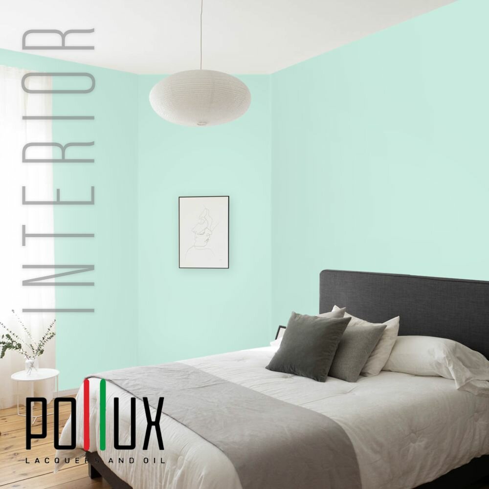 Краска моющаяся интерьерная для стен и потолков, Pollux INTERIOR без запаха, быстросохнущая, акриловая, матовое покрытие, цвет NCS S 2555-B80G, 1л.