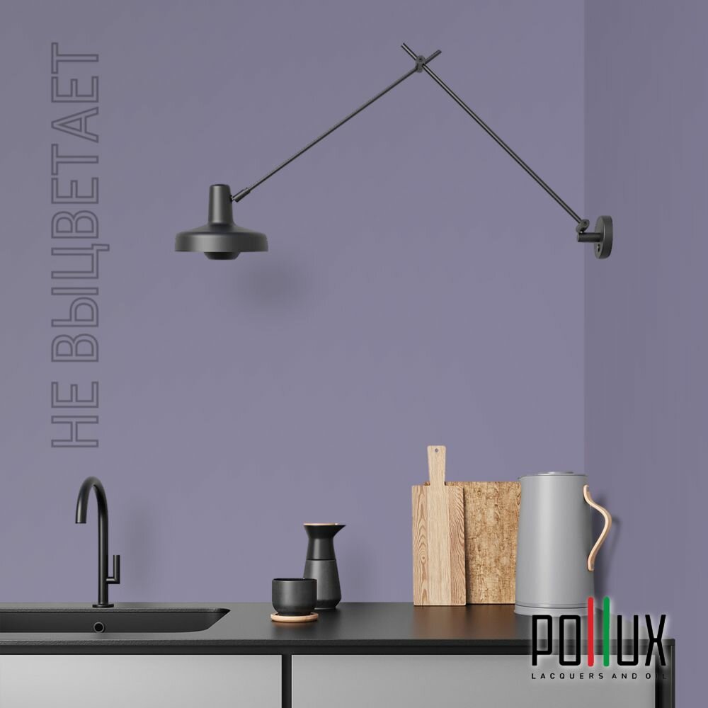 Краска моющаяся интерьерная для стен и потолков, Pollux INTERIOR без запаха, быстросохнущая, акриловая, матовое покрытие, цвет NCS S 7020-R60B, 1л.
