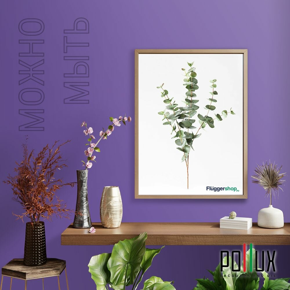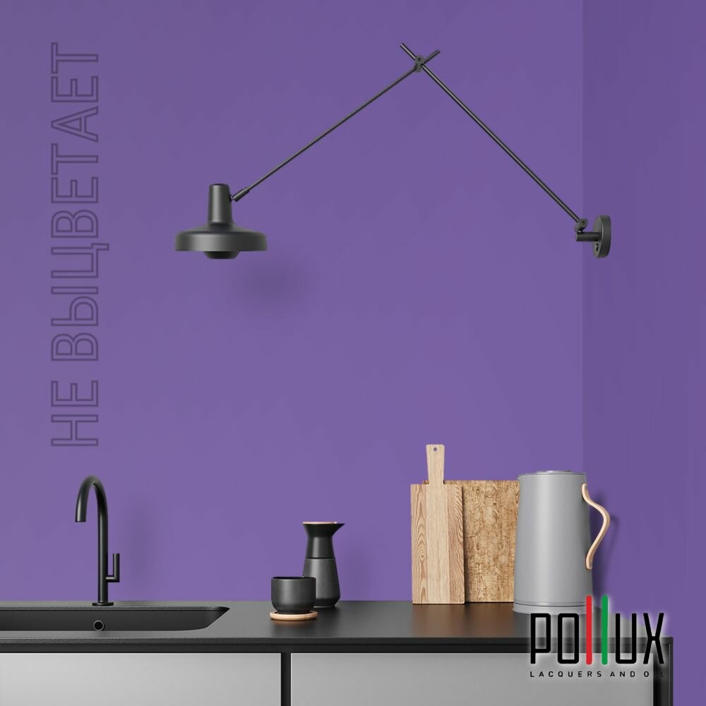 Краска моющаяся интерьерная для стен и потолков, Pollux INTERIOR без запаха, быстросохнущая, акриловая, матовое покрытие, цвет NCS S 7020-R60B, 1л.