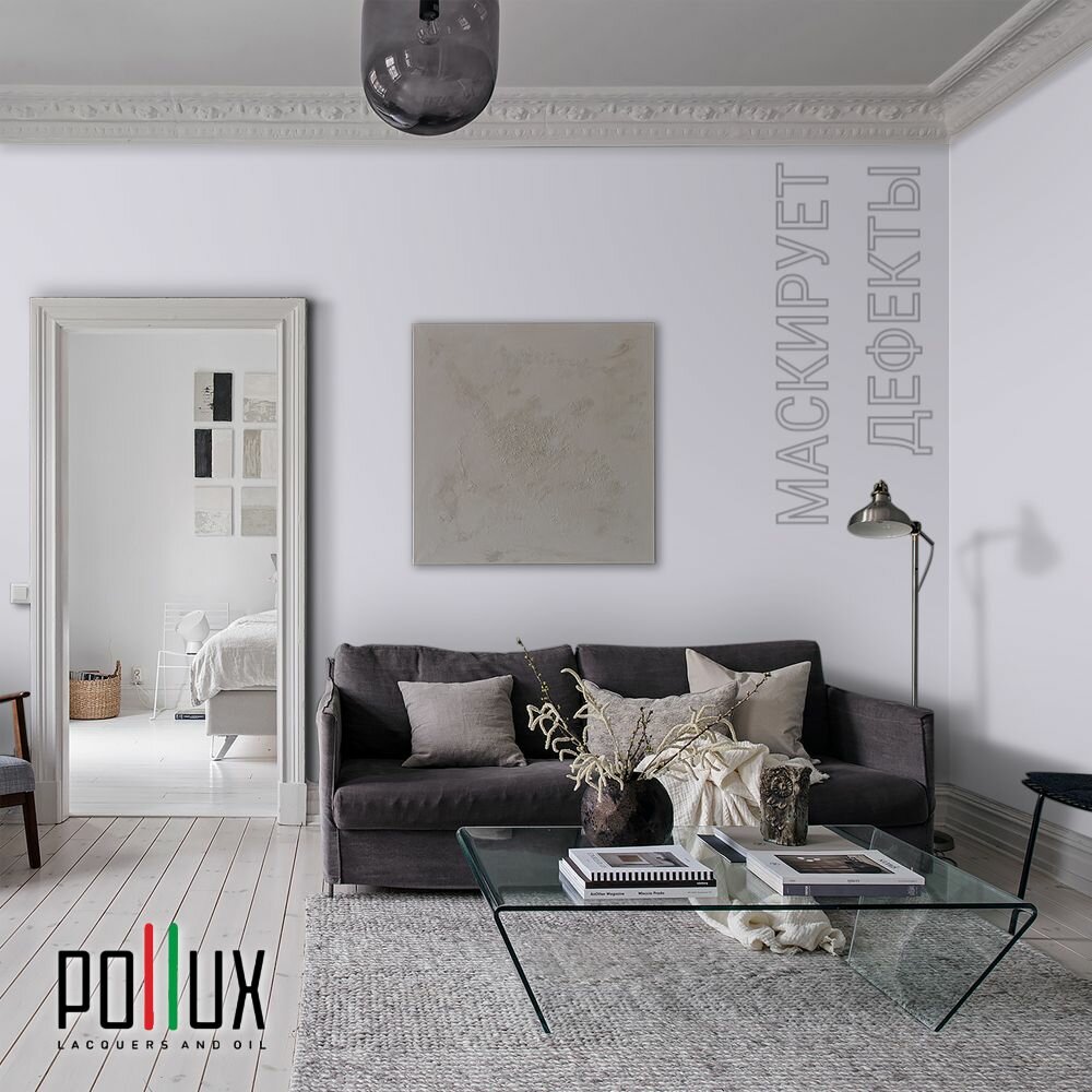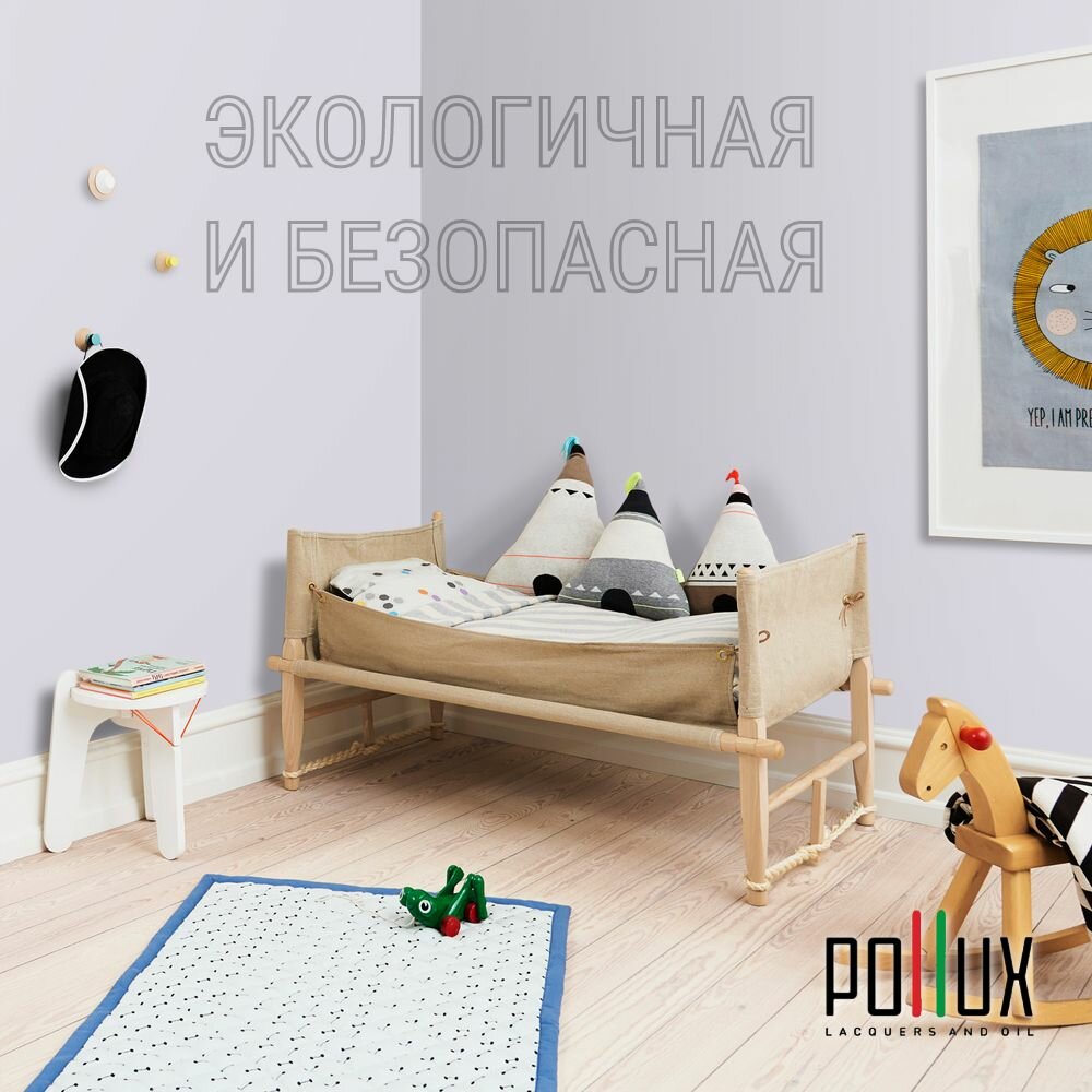 Краска моющаяся интерьерная для стен и потолков, Pollux INTERIOR без запаха, быстросохнущая, акриловая, матовое покрытие, цвет NCS S 0603-R60B, 1л.