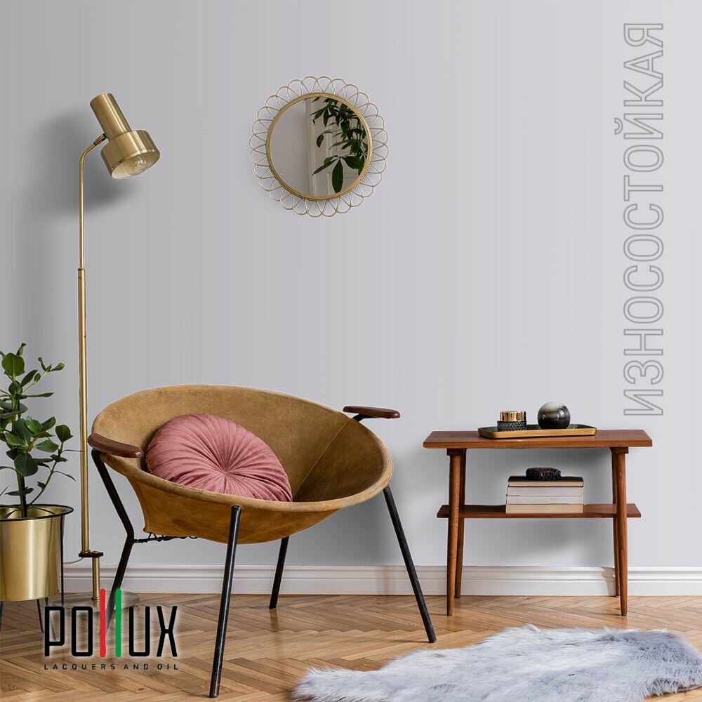 Краска моющаяся интерьерная для стен и потолков, Pollux INTERIOR без запаха, быстросохнущая, акриловая, матовое покрытие, цвет NCS S 1030-R60B, 1л.