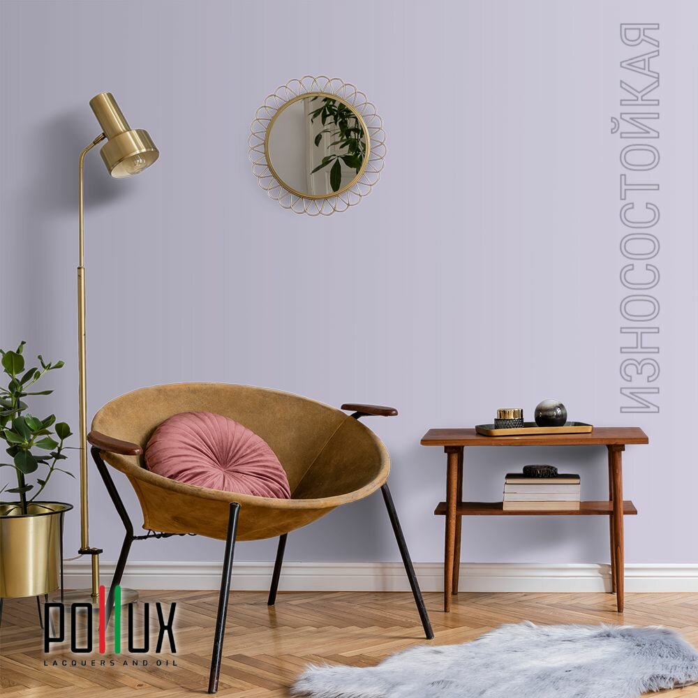 Краска моющаяся интерьерная для стен и потолков, Pollux INTERIOR без запаха, быстросохнущая, акриловая, матовое покрытие, цвет NCS S 3030-R60B, 1л.