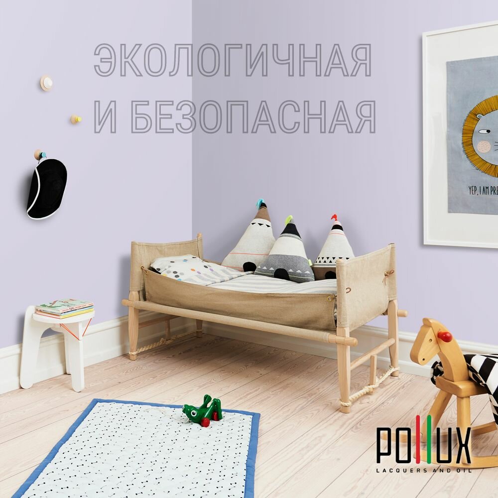 Краска моющаяся интерьерная для стен и потолков, Pollux INTERIOR без запаха, быстросохнущая, акриловая, матовое покрытие, цвет NCS S 0525-R60B, 1л.