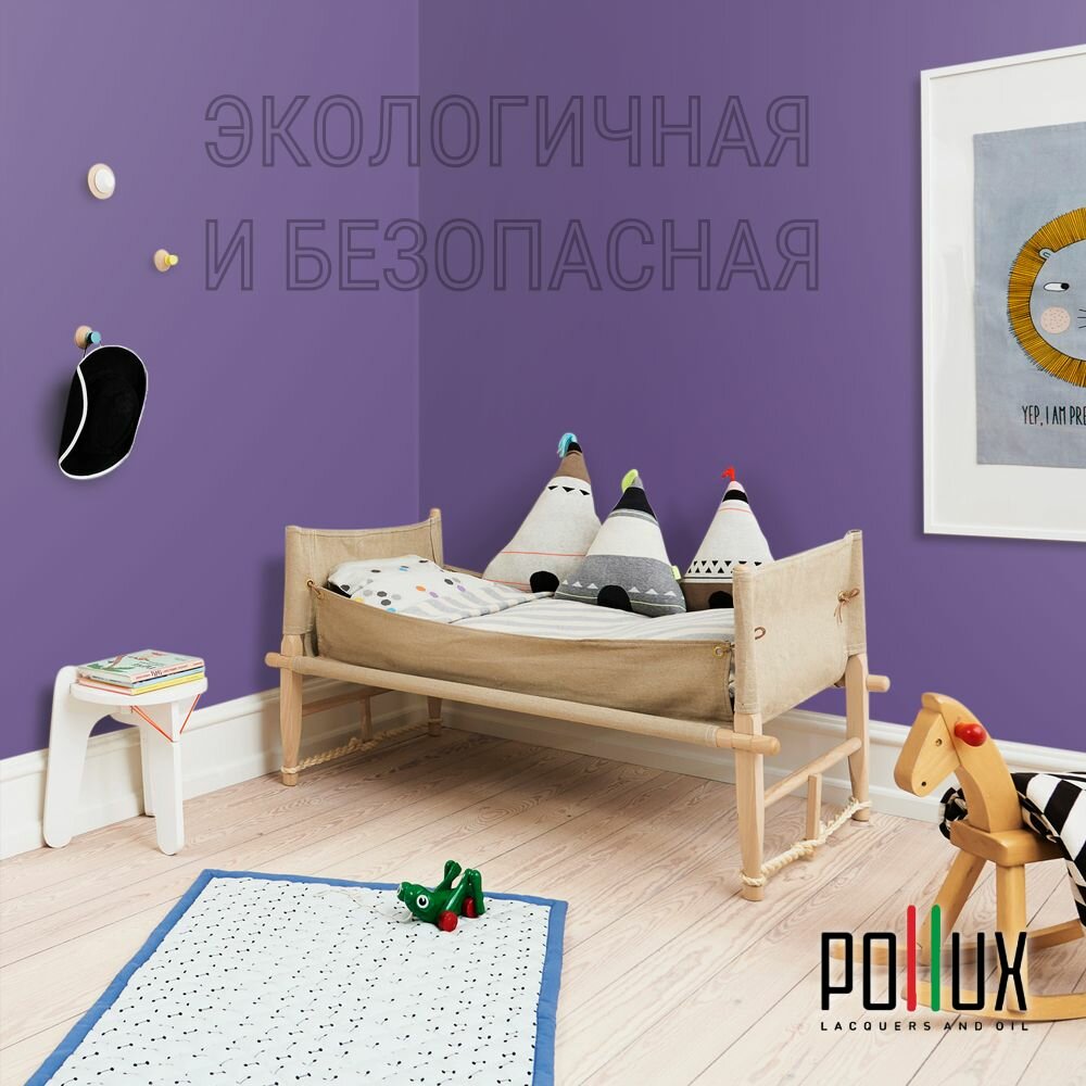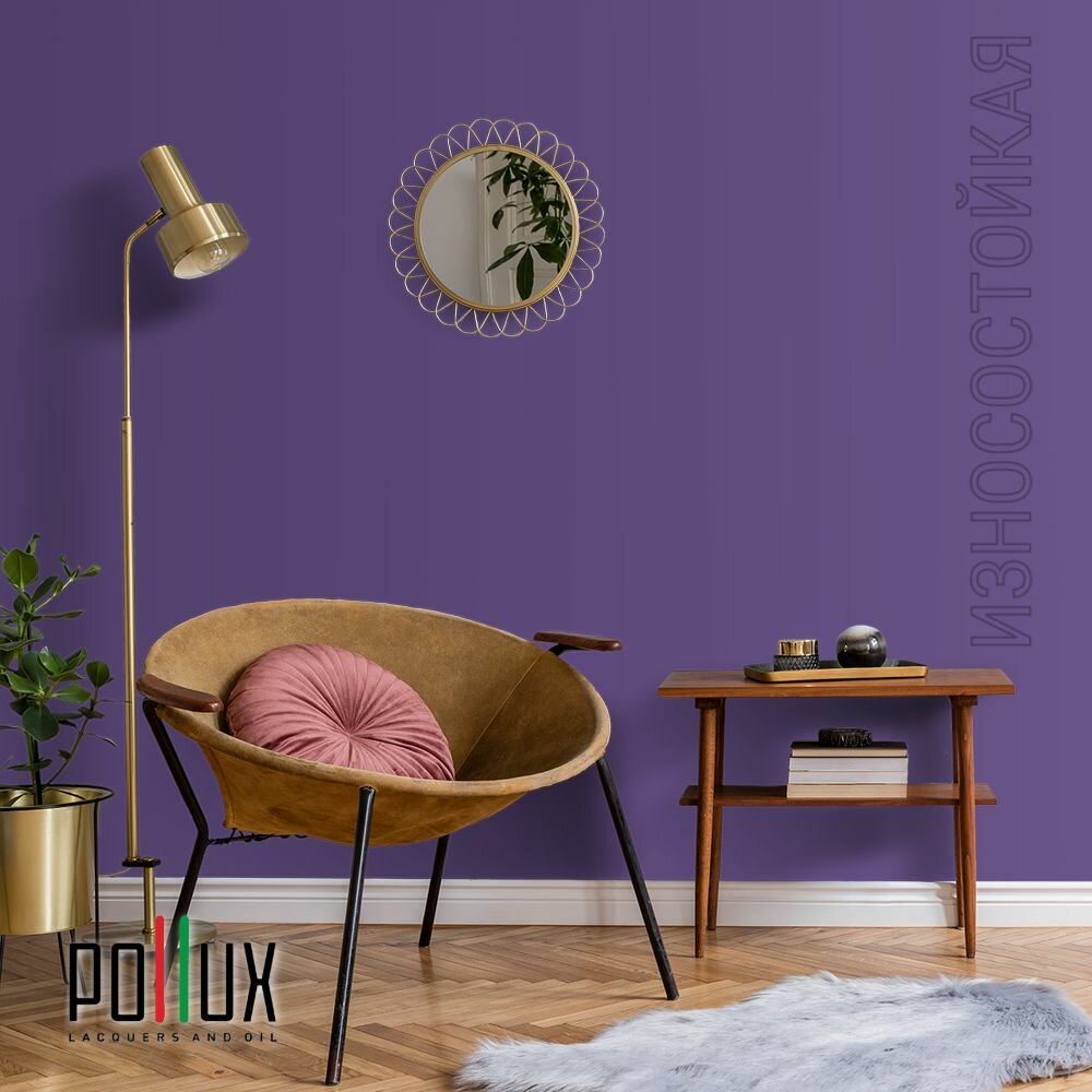 Краска моющаяся интерьерная для стен и потолков, Pollux INTERIOR без запаха, быстросохнущая, акриловая, матовое покрытие, цвет NCS S 3030-R60B, 1л.