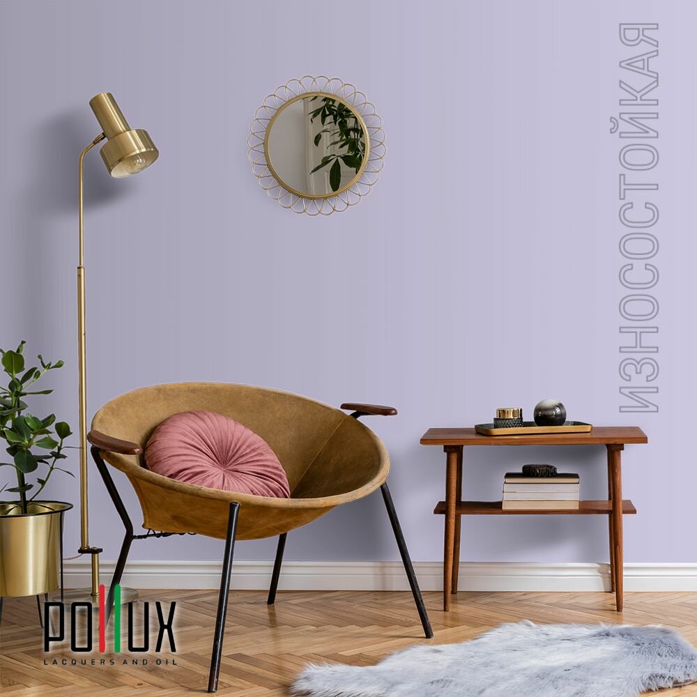 Краска моющаяся интерьерная для стен и потолков, Pollux INTERIOR без запаха, быстросохнущая, акриловая, матовое покрытие, цвет NCS S 3030-R60B, 1л.