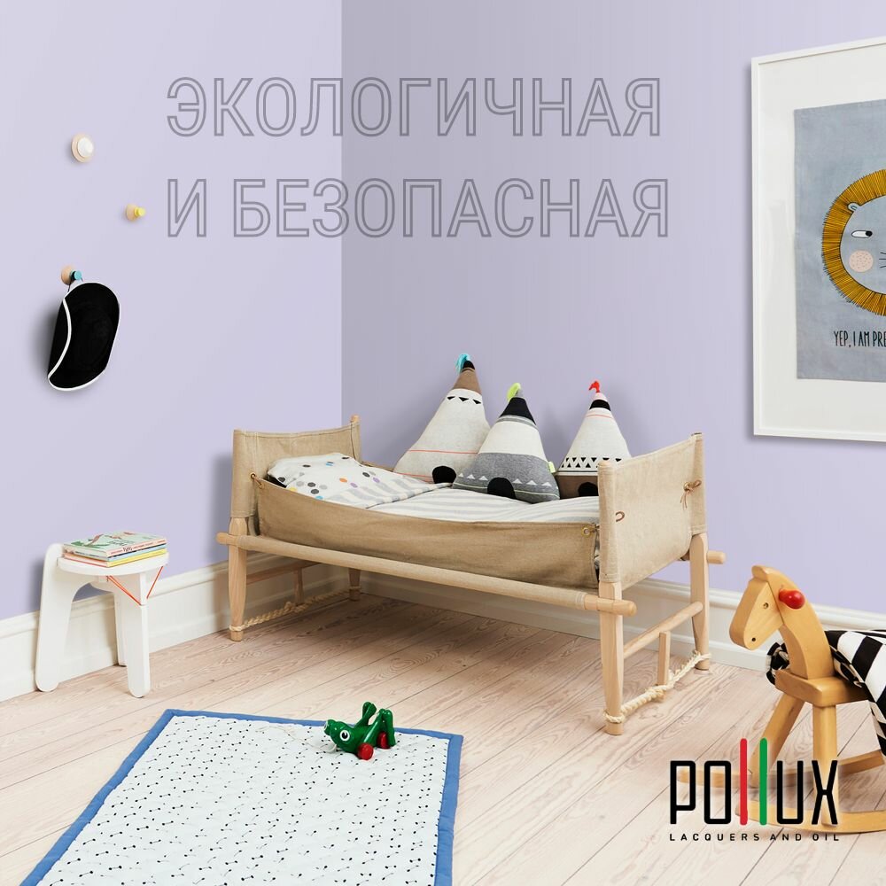 Краска моющаяся интерьерная для стен и потолков, Pollux INTERIOR без запаха, быстросохнущая, акриловая, матовое покрытие, цвет NCS S 0603-R60B, 1л.