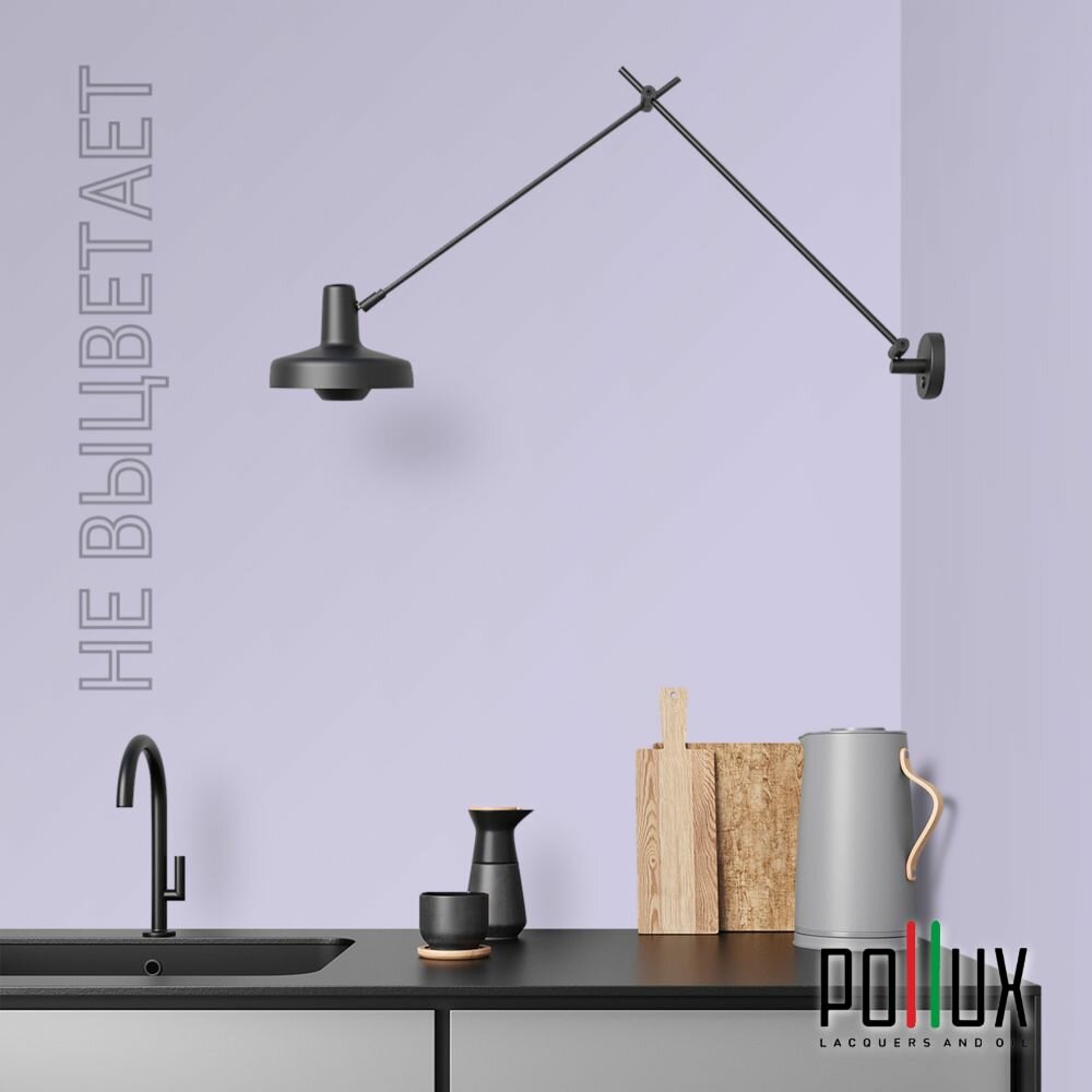 Краска моющаяся интерьерная для стен и потолков, Pollux INTERIOR без запаха, быстросохнущая, акриловая, матовое покрытие, цвет NCS S 7020-R60B, 1л.