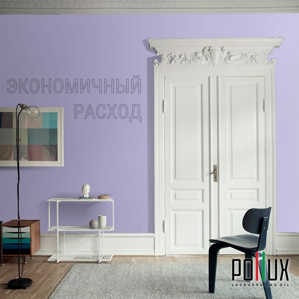 Краска моющаяся интерьерная для стен и потолков, Pollux INTERIOR без запаха, быстросохнущая, акриловая, матовое покрытие, цвет NCS S 0505-R60B, 5л.