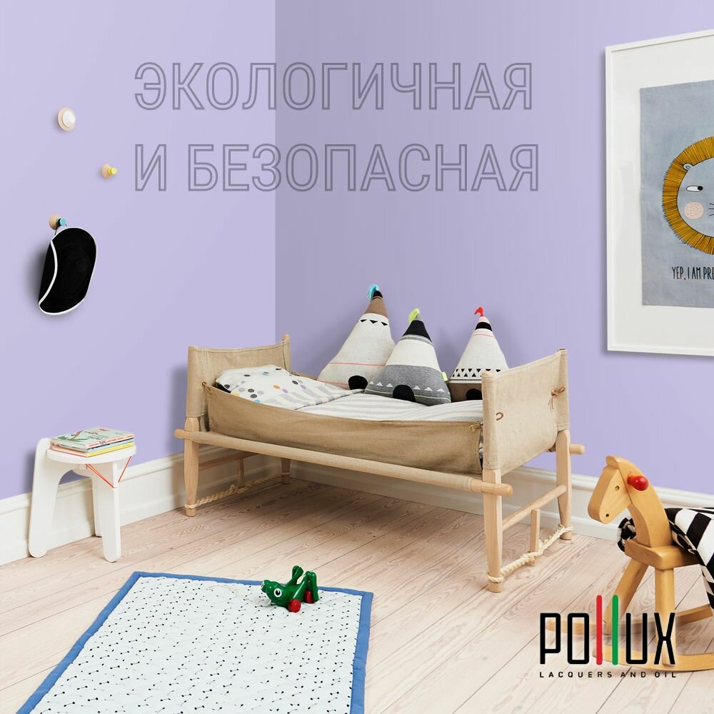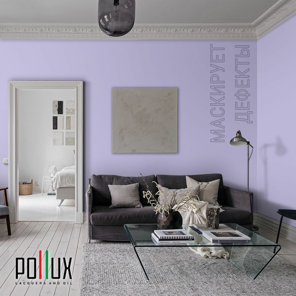 Краска моющаяся интерьерная для стен и потолков, Pollux INTERIOR без запаха, быстросохнущая, акриловая, матовое покрытие, цвет NCS S 0603-R60B, 1л.