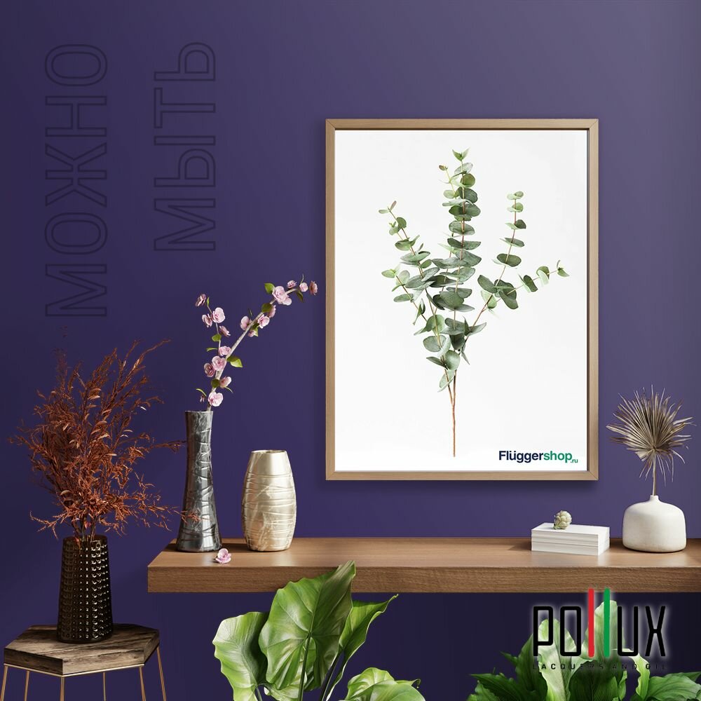 Краска моющаяся интерьерная для стен и потолков, Pollux INTERIOR без запаха, быстросохнущая, акриловая, матовое покрытие, цвет NCS S 3030-R60B, 1л.