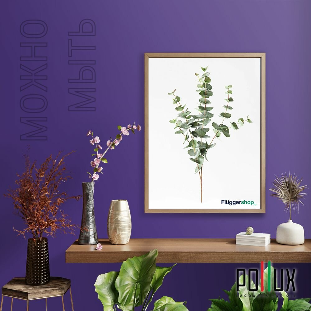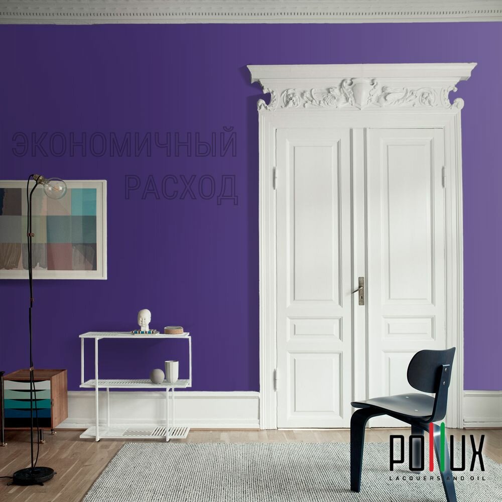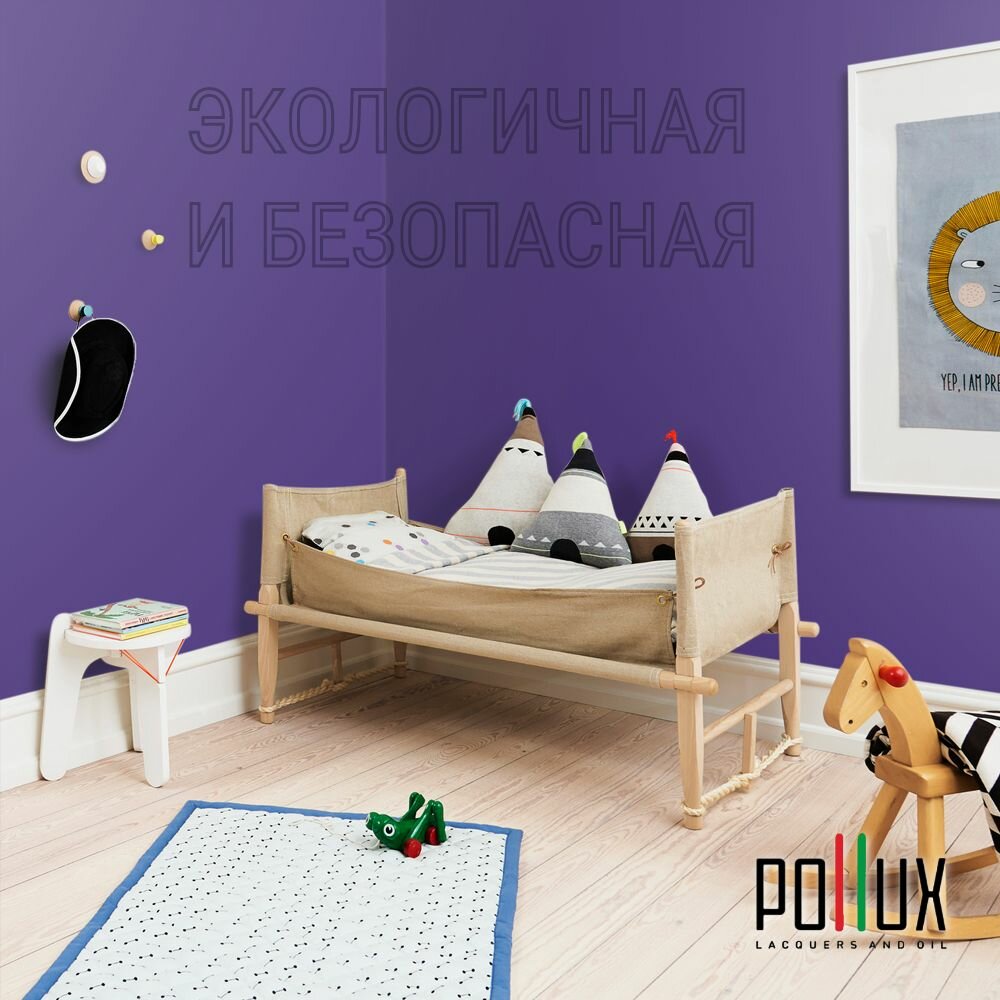 Краска моющаяся интерьерная для стен и потолков, Pollux INTERIOR без запаха, быстросохнущая, акриловая, матовое покрытие, цвет NCS S 3030-R60B, 1л.