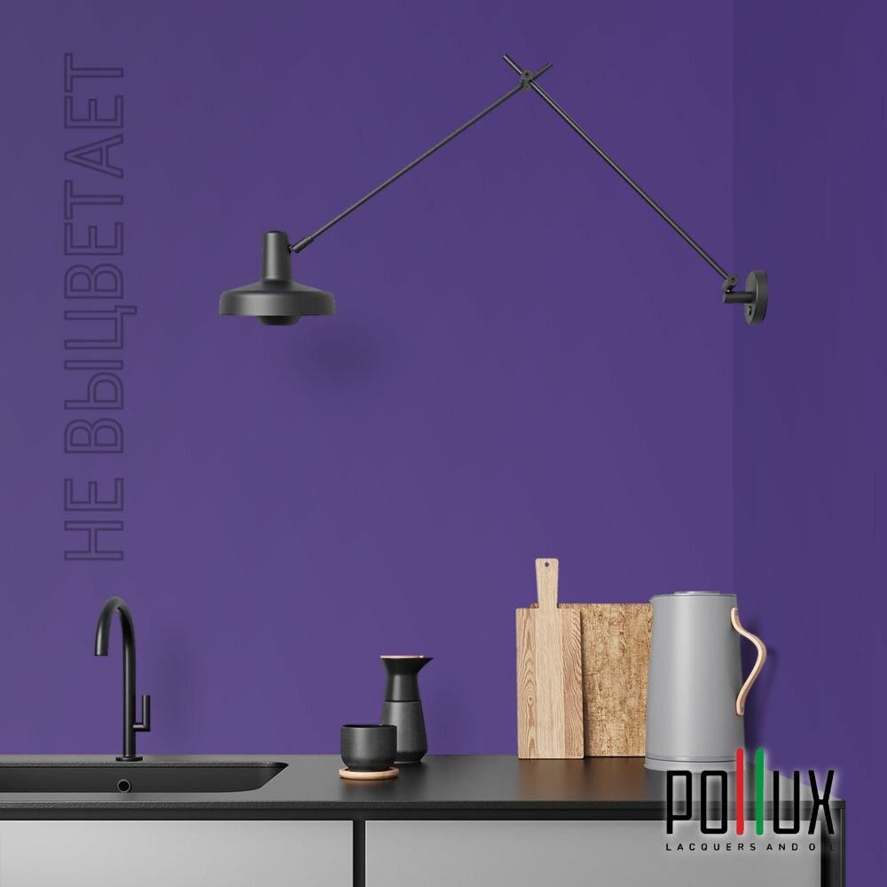 Краска моющаяся интерьерная для стен и потолков, Pollux INTERIOR без запаха, быстросохнущая, акриловая, матовое покрытие, цвет NCS S 7020-R60B, 1л.