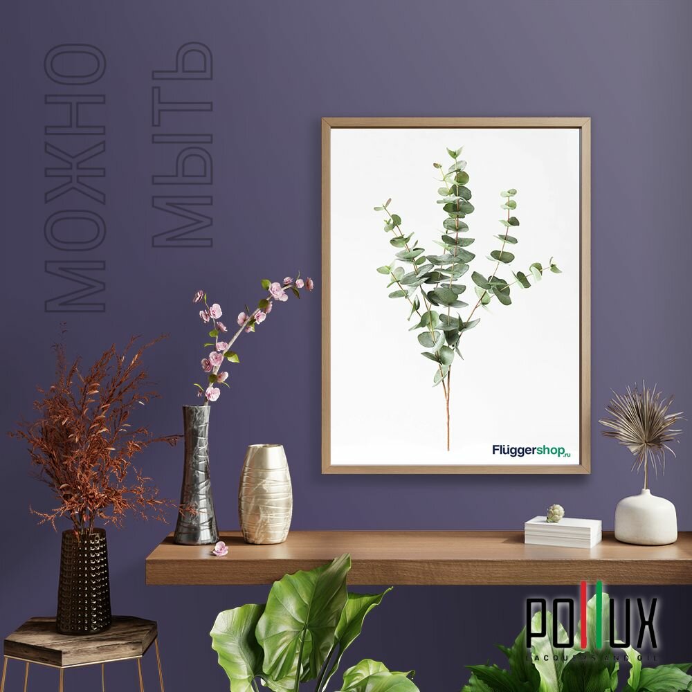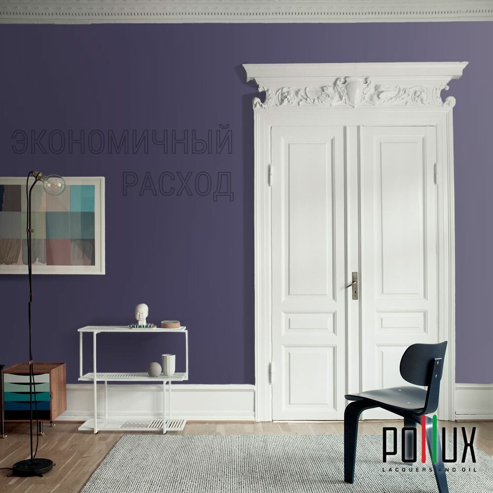 Краска моющаяся интерьерная для стен и потолков, Pollux INTERIOR без запаха, быстросохнущая, акриловая, матовое покрытие, цвет NCS S 7020-R60B, 1л.