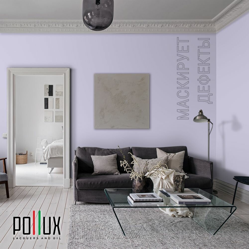 Краска моющаяся интерьерная для стен и потолков, Pollux INTERIOR без запаха, быстросохнущая, акриловая, матовое покрытие, цвет NCS S 7020-R60B, 1л.