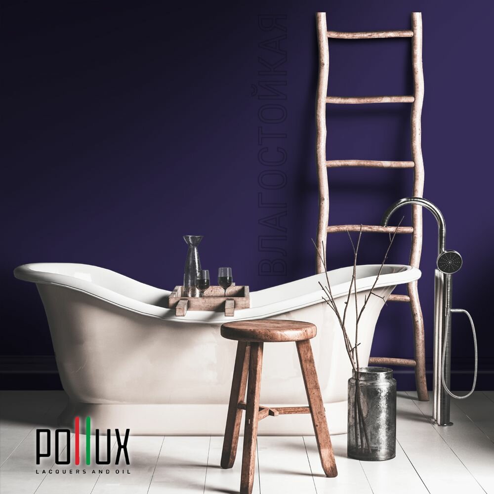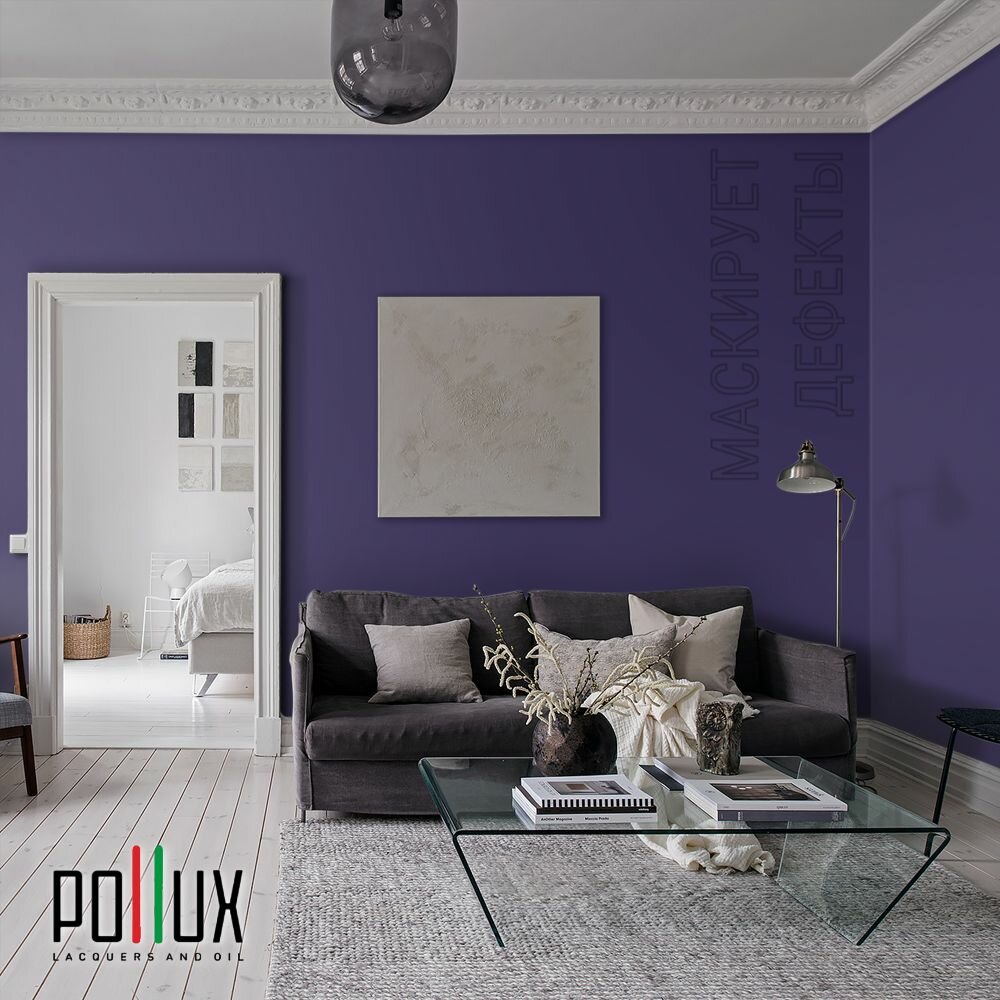 Краска моющаяся интерьерная для стен и потолков, Pollux INTERIOR без запаха, быстросохнущая, акриловая, матовое покрытие, цвет NCS S 7020-R60B, 1л.