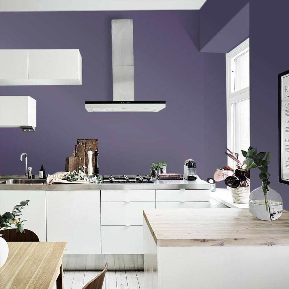 Краска моющаяся интерьерная для стен и потолков, Pollux INTERIOR без запаха, быстросохнущая, акриловая, матовое покрытие, цвет NCS S 7020-R60B, 1л.