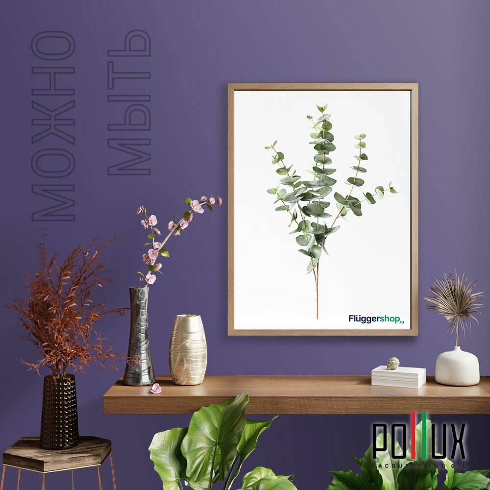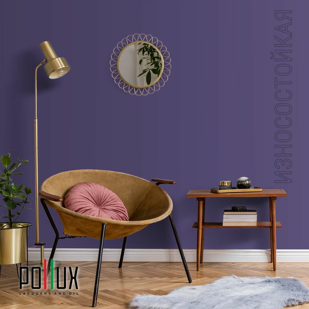 Краска моющаяся интерьерная для стен и потолков, Pollux INTERIOR без запаха, быстросохнущая, акриловая, матовое покрытие, цвет NCS S 3030-R60B, 1л.