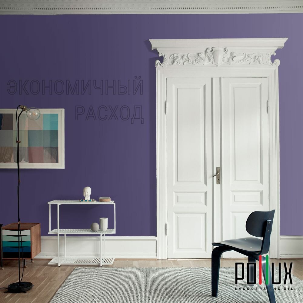 Краска моющаяся интерьерная для стен и потолков, Pollux INTERIOR без запаха, быстросохнущая, акриловая, матовое покрытие, цвет NCS S 7020-R60B, 1л.
