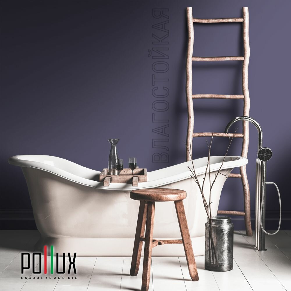 Краска моющаяся интерьерная для стен и потолков, Pollux INTERIOR без запаха, быстросохнущая, акриловая, матовое покрытие, цвет NCS S 7020-R60B, 1л.