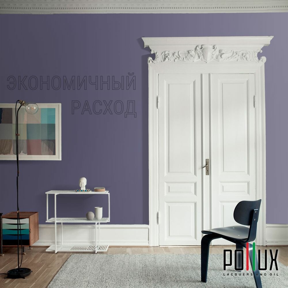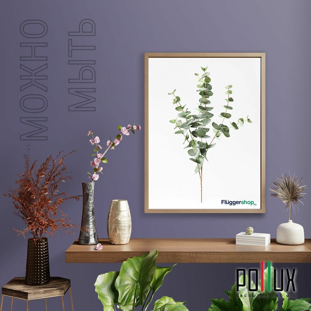 Краска моющаяся интерьерная для стен и потолков, Pollux INTERIOR без запаха, быстросохнущая, акриловая, матовое покрытие, цвет NCS S 3030-R60B, 1л.