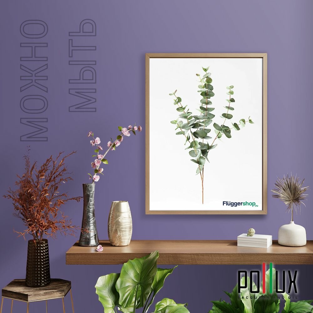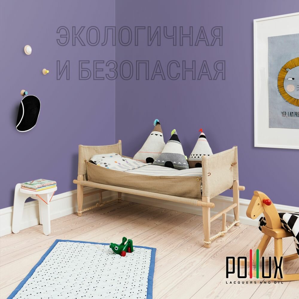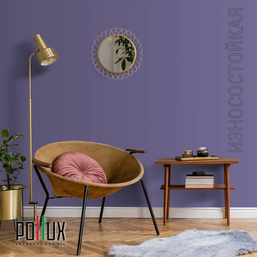 Краска моющаяся интерьерная для стен и потолков, Pollux INTERIOR без запаха, быстросохнущая, акриловая, матовое покрытие, цвет NCS S 3030-R60B, 1л.