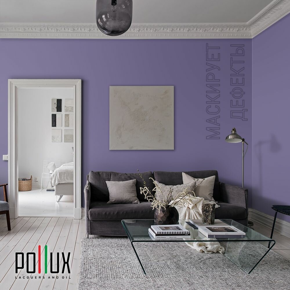 Краска моющаяся интерьерная для стен и потолков, Pollux INTERIOR без запаха, быстросохнущая, акриловая, матовое покрытие, цвет NCS S 7020-R60B, 1л.