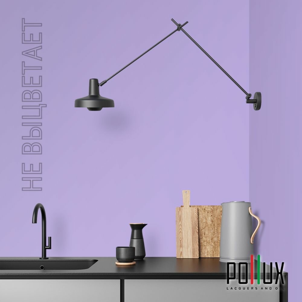 Краска моющаяся интерьерная для стен и потолков, Pollux INTERIOR без запаха, быстросохнущая, акриловая, матовое покрытие, цвет NCS S 0525-R60B, 1л.