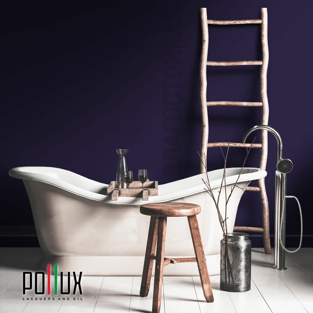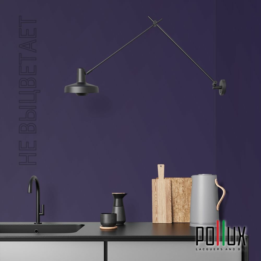 Краска моющаяся интерьерная для стен и потолков, Pollux INTERIOR без запаха, быстросохнущая, акриловая, матовое покрытие, цвет NCS S 7020-R60B, 1л.