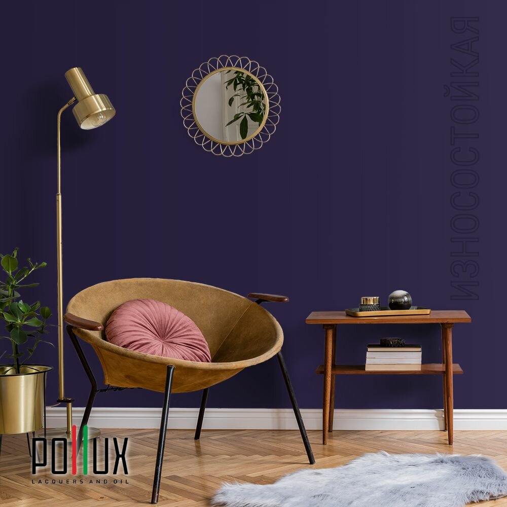 Краска моющаяся интерьерная для стен и потолков, Pollux INTERIOR без запаха, быстросохнущая, акриловая, матовое покрытие, цвет NCS S 3030-R60B, 1л.