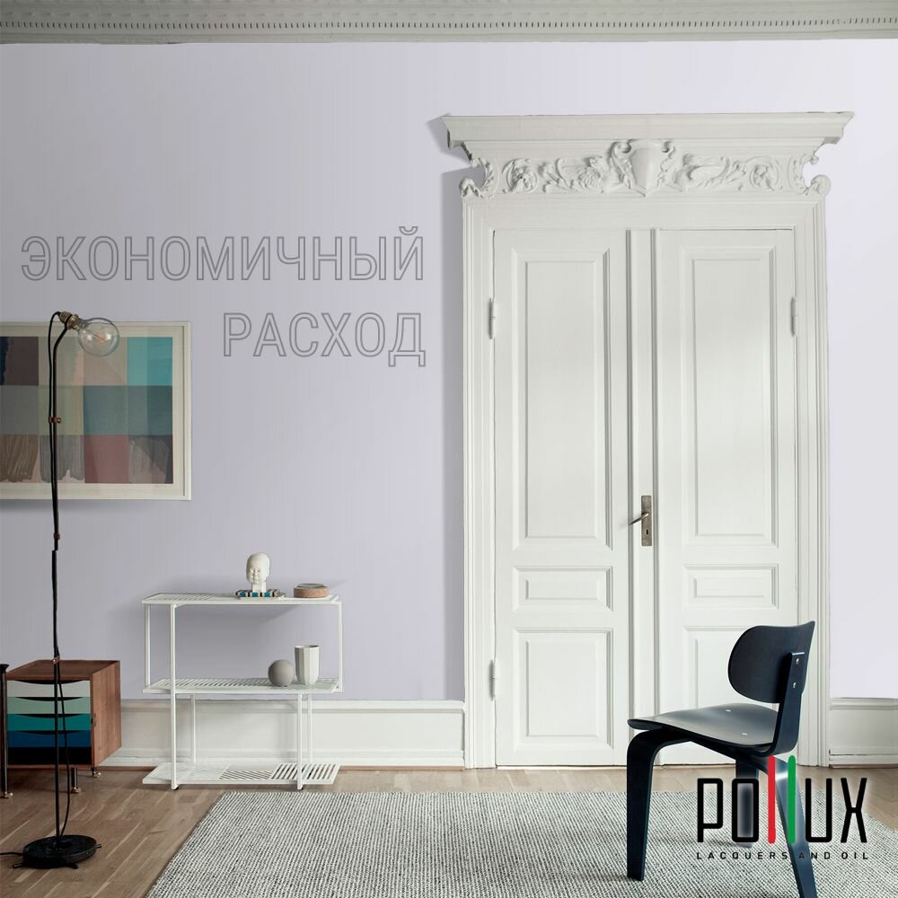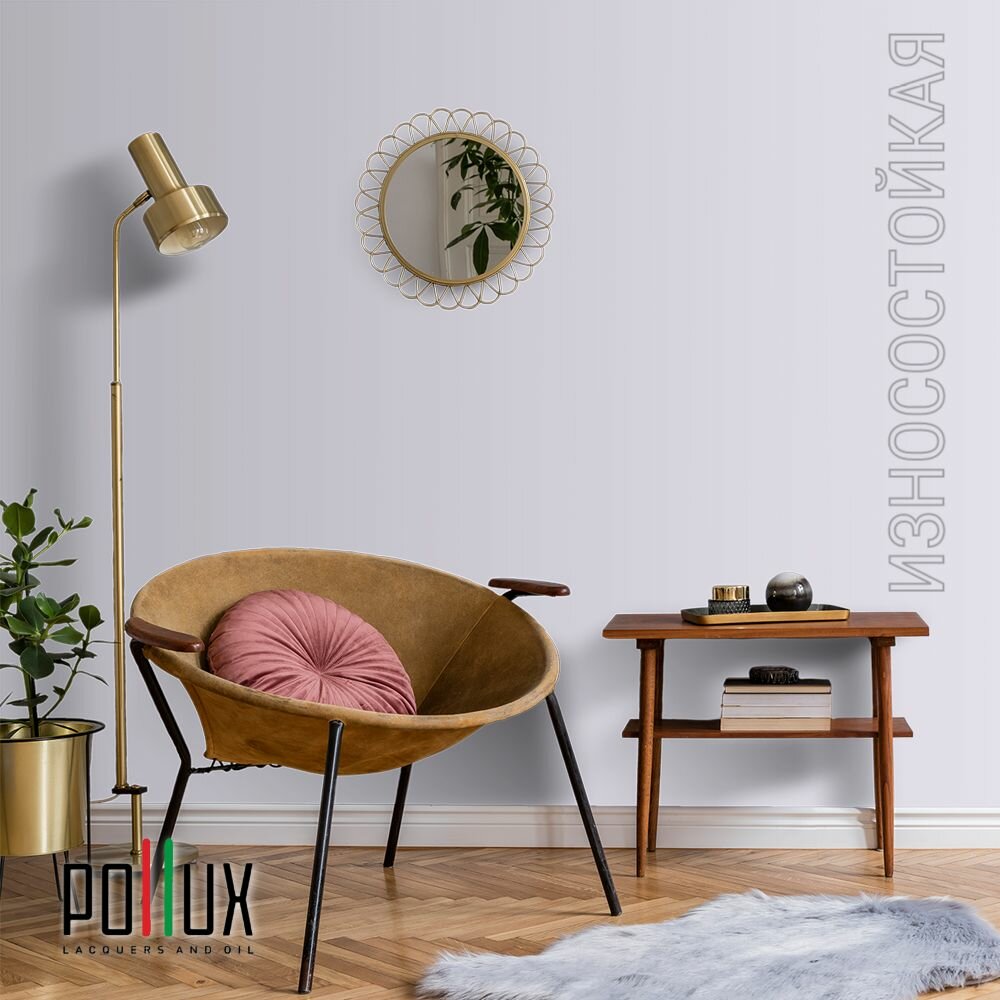 Краска моющаяся интерьерная для стен и потолков, Pollux INTERIOR без запаха, быстросохнущая, акриловая, матовое покрытие, цвет NCS S 0603-R60B, 1л.